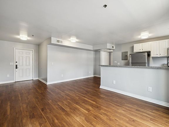 Private balconyWood-style laminate floorsWhite cabinetryRecently remodeled bathroomStainless steel appliancesSpacious living arrangementSpacious bedroom