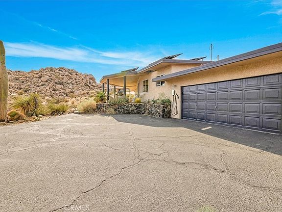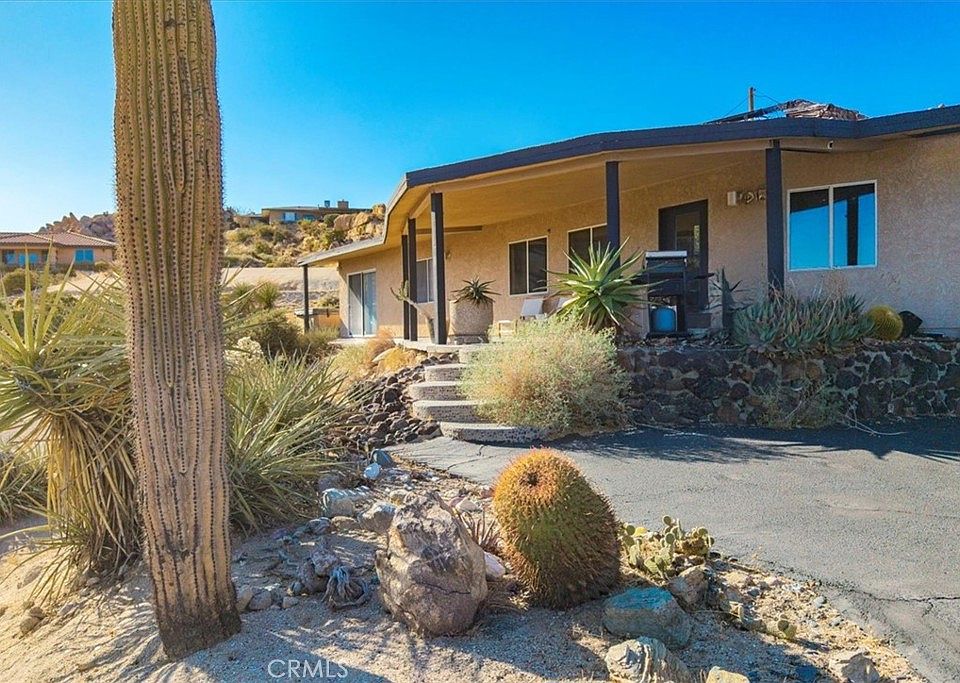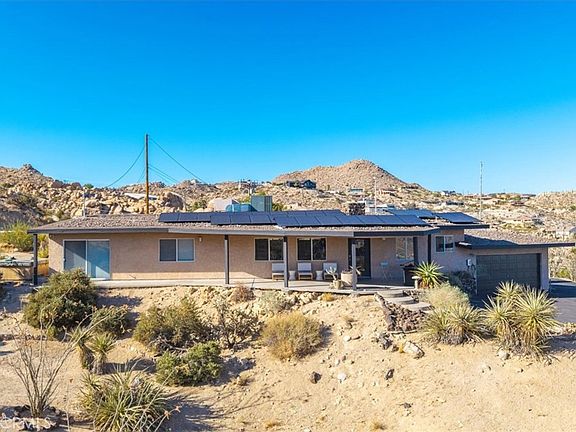 Tucked high in the coveted Western Hills Estates of Yucca Valley, this 2 bedroom, 1 bath gem offers privacy, perched among boulders with sweeping panoramic views and PAID/OWNED SOLAR. A long, private driveway leads to a secluded desert sanctuary where nature, character, and comfort come together beautifully. Step inside to find a home full of vintage charm—original architectural details, warm charismatic finishes, and mid-century desert vibes that are complemented by thoughtful modern updates throughout including a well though out, and more than generous walk in closet. The home features windows that frame the surrounding rock formations and expansive valley views and native vegetation, creating a connection between indoors and out. Outside, enjoy the magic of the high desert from a spacious patio ideal for entertaining, relaxing, or stargazing in total privacy. Whether you’re seeking a peaceful full-time residence, weekend escape, or a unique vacation rental, this one-of-a-kind property offers the perfect blend of retro charm, modern ease, and unmatched natural beauty. Just minutes from the heart of Yucca Valley and a short drive to Joshua Tree National Park, yet you feel a world away.