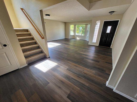 The home has new luxury vinyl planking throughout the main level, new carpeting upstairs and in basement, new granite kitchen countertops, central heat and air-conditioning, a back deck and large fenced yard.