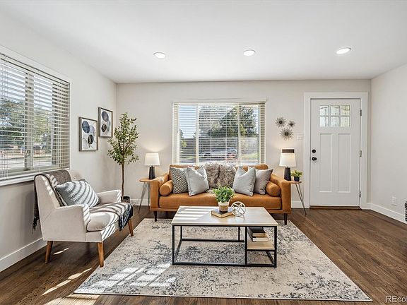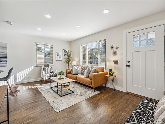 A thoughtful renovation completely modernized this charming mid century ranch in 2022 and made it truly sparkle! The open floor plan features beautifully refinished hardwood floors, and the entire home is very sunny and inviting. There is a comfortable and spacious feel to this home and it has a great flow from the living room to the dining room to the beautiful open kitchen. The new kitchen cabinets are complimented by a timeless subway tile backsplash and the sleek profile of the appliances all give a perfect modern vibe. The full bath is decked out with contemporary yet timeless finishes, everything in this home is both modern and classic, and very tasteful. The three bedrooms are all roomy and have really amazing closet space! One of the bedrooms, currently used as an office, features doors to the lush back yard. The laundry is conveniently tucked away - the new LG washer and dryer stay, and the super energy efficient solar panels will offset future utility bills. The current owner has loved the large backyard and transformed the landscaping by adding spruce, aspen and apple trees to name only a few, along with a flagstone patio and fantastic gazebo to enjoy the beauty of Colorado year round. Within a few short blocks, Olde Town Arvada awaits! Filled with exceptional restaurants, coffee shops, bars, quaint stores, a theater, and a seasonal farmers market, there is always something close by to do. If you're looking for a little change of pace, venture into downtown Denver on the Gold Light Rail Line in less than 25 minutes, or drive to the mountains in less than 15! Pick up the Ralston Creek Trail in the park a block away and be connected to numerous Arvada parks and explore miles of endless trails. Come settle into this perfectly updated home in the perfect location where there is nothing to do but enjoy all Arvada and Colorado have to offer!