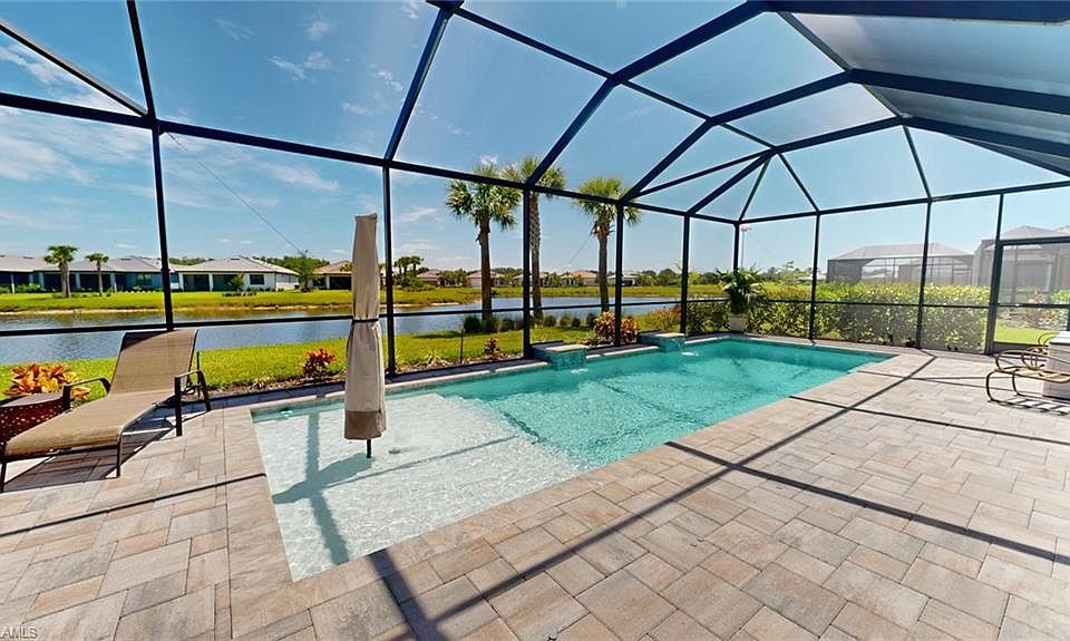 Del Webb Naples, Extraordinarily Optioned “Stellar” Model Echelon Series Home w/Pool/Impact Windows & Doors, Stone Front, on Premium Oversized Water Lot, Beautiful Lake Views, Stone Front Elevation, 2504 Sq.Ft. 3097 Total Sq.Ft. 3 Bedrooms, Den w/Glass French Doors, 3 Full Baths, 3 Car Garage, Options Include; Saltwater Pool System w/Sundeck/Water Features, Zero Corner Sliders, Tray Ceilings, Gourmet Kitchen Option, SS Appliances, 42” Stone Gray Cabinets w/Soft Close/Rollouts/Crown Molding, Bullnose Quartz Tops, Wood Canopy Hood, Under Cab Lighting, Pendant Lighting, Single Basin Composite Sink, Brushed Nickel Hdwr, Walk-In Shower Master, Shower ILO Tub Bath 2, Group 6 Porcelain Plank Tile Flooring, 8’ Doors, 5 ¼ Base, Crown Molding, Plantation Shutters, Custom Paint Throughout, Finished Laundry Rm, 4’ Garage Ext, Epoxied Garage Flr., Numerous Electrical Upgrades. Too Many Options to List. Property Complimented by Oasis Club Resort Style Amenity Center, Resort Pool/Lap Pool/Jacuzzi, Fitness Center, 12 Pickleball Courts/Tennis Courts/Bocce Courts, Hall, Golf Sim, Movement Rm, Activities Director. Championship Golf Course, Pro Shop. “Come Experience the Beauty that is Ave Maria”