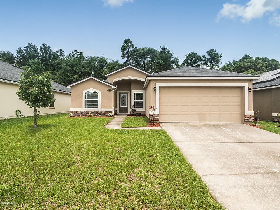Welcome Home! Enjoy this DR Horton Clearwater floor plan. This sought-after Picketts Cove home offers 3b/ 2b preserve lot. The home is close to downtown and NAS Jax. A privacy fence overlooking a wooded preserve and a covered back patio are just the beginning to this gorgeous home! Enjoy granite countertops, stainless steel appliances, and an indoor laundry room includes washer/dryer and shelving. A/C recently serviced and upgraded with storm surge protection. The separate master bedroom overlooks the gorgeous wooded preserve and the master bathroom includes an upgraded shower. A security system comes included with cameras and the vaulted ceilings make the living area feel so open! Home can be sold furnished. Schedule your viewing today!