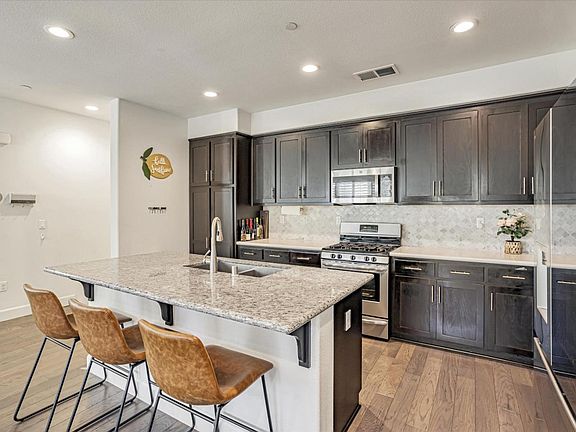 Corner lot and end unit! Welcome to this modern and sleek townhouse that offers an exceptional living experience with its spacious and well-designed layout and tons of natural lights. Traditional townhouse with no neighbor above or below. It features 2 bedrooms, 2.5 baths and a 2-car side-by-side garage that provides ample storage space and easy access to your vehicles. Tastefully upgrades throughout. High ceiling and open concept features! The chef-grade kitchen includes custom white shaker cabinets, modern full mosaic tile backsplash, natural stone countertop, high end stainless steel appliances, supersize island. Formal dining area and private patio is perfect for entertaining. Beautiful floors in the main level and upgraded carpets throughout. Central AC and heating. Water softener. EV charger. The primary suite boasts a spacious walk-in closet and double sink vanities, providing a luxurious and relaxing experience. Few minutes walking to BJs restaurant, AMC, Costco and New Park Mall. Easy access to freeway 880 & Bart. Walking distance to the company commute buses stop and Starbucks. Close to the desirable Challenger school and park. HOA including all common area maintenance, trash removal, roof and playground structure. No rental restriction. Won't last long!
