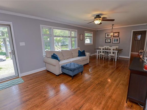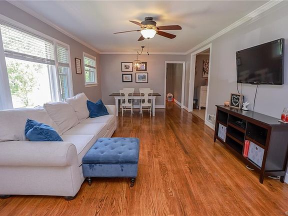 Super cute 3 bedroom 2 full bath brick Rancher just off Riverside Dr. Spacious Family Room with hardwood floors, ceiling fan, coat closet, crown molding & gas fireplace (currently not working). The open dining room has hardwood floors, chandelier & crown molding. Eat-in Kitchen with tiled floors, stainless appliances, tile backsplash, ceiling fan & plenty of cabinet space. In the Living Room there are hardwood floors & track lighting. In the Master bedroom you'll find hardwood floors, ceiling fan, a single door closet & sliding door closet. Bedrooms 2 & 3 both have hardwood floors, ceiling fans & single door closets. Off the hall is a full bath with tiled floor, single vanity & tub/shower combo. Off the kitchen is the utility room complete with tiled floors, shelving, overhead light, washer, dryer & back patio access, there is also an additional full bath with single vanity & walk-in shower. Home also features paved driveway, fenced in landscaped backyard with gorgeous patio & detached storage shed. All this plus conveniently located to EVERYTHING, seconds from interstate & just minutes from downtown! With all this little gem has to offer it won't last long!