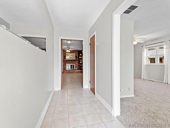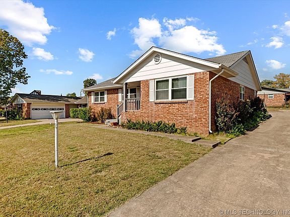 Welcome home! This charming full brick home is in a great neighborhood close Sooner Park and Adams Golf Course. New carpet & paint & some ceiling fans in 2023. Vinyl windows. Kitchen is light and bright and open to the den with cozy gas log fireplace & built in bookshelves. Formal living area plus large dining area and lots of natural light. Primary bedroom with full bath & direct access to the laundry room. Newer water heater. Garage entry is level and on the back of the home with workshop space. Offering a private entrance and nice patio entertaining space in the back. Perfect for entertaining, planting a garden or parking a boat or RV. All appliances including washer & dryer will remain!