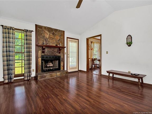 Wonderful country living! This great ranch home features 3 bedrooms, 2 bathrooms a formal dining room, eat in kitchen and a great room with a real wood burning fireplace and vaulted ceilings. Laminate floors throughout the main living areas and the bedrooms. An attached garage and a carport, a front porch and rear deck. The back yard is fenced and has a detached garage and storage building. .73 acre lot close to shops, dining and the Hope mills Lake.