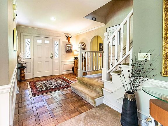 This elegant, custom designed home offers grand-sized rooms and spectacular views of private and peaceful 5+ acres, with many upgrades throughout. First floor boasts a gourmet chef's kitchen that opens to the dining room, spacious family room with cathedral ceiling, fireplace & panoramic views, cozy den. Living room opens to a large deck, patio & firepit for outdoor entertaining. Finished lower lever. This and so much more in perfect location close to everything!