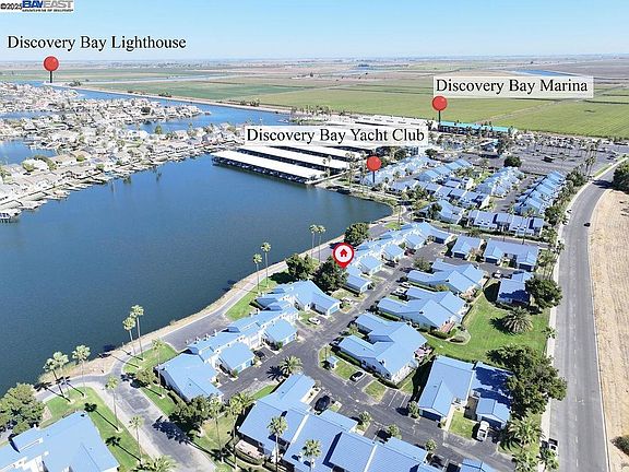 HARBOR BAY CONDO W/FABULOUS WATER VIEWS! RESORT STYLE LIVING OR PERFECT SECOND HOME - COMPLETELY RENOVATED WITH DESIGNER TOUCHES THROUGHOUT - THIS BEAUTIFUL UNIT OFFERS 1354 SQ FT WITH 2 BEDROOMS (ONE BED/BATH ON MAIN LEVEL), 2 FULL BATHS + BONUS LOFT (POSSIBLE CONVERSION TO 3RD BEDROOM) - Open concept living with water views from every room - Spacious living area w/high vaulted ceiling, luxury planked flooring, fireplace w/accent tile, dining area and slider door to spacious deck - Kitchen w/quartz counters, SS appliances + refrigerator, eat at bar & stack washer & dryer included - Both baths updated w/quartz counters, stall showers and tile flooring - Upper level offers Primary Suite w/high vaulted ceiling and balcony + Bonus Loft - Single car garage w/epoxy floor + assigned parking space in front of Unit - Walk along the waterfront path to the Marina, Yacht Club, Marina Bar & Grill or walk, jog, bike ride on levy for miles - Across the street you will find Discovery Bay Country Club for any golf enthusiast - Community Pool + Close by Community Center w/lap pool, Pickle Ball & Tennis - Live Where You Play - Many Discovery Bay Community activities throughout the year - All this and more...