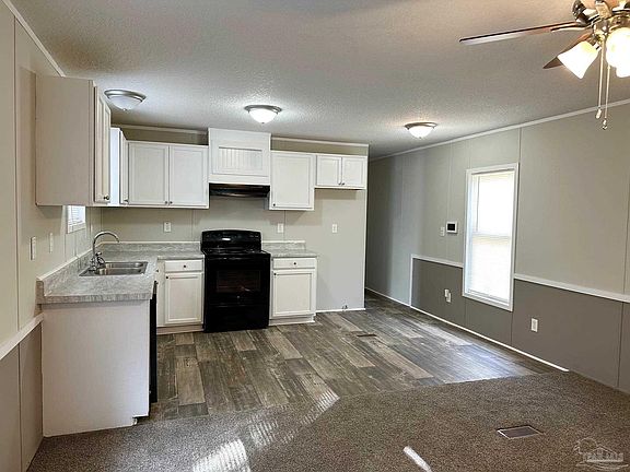 A full acre, in Baker situated in an established area and in the popular Baker School District. This wonderful split floor plan in this 16x80 Scotbilt Manufactured Home is complete with an alarm system and there is new flooring through out. The primary suite has two walk in closets! The yard is partially privacy fenced, has a several nice shade trees, white and lavender wisteria, and some grape vines. Make it yours' and call it home. Seller will consider owner financing. (The alarm system monitoring can be discontinued or assumed at under $40.00 per month. The alarm has an app so you can arm and disarm from your mobile phone.) Survey is already done - see photos.