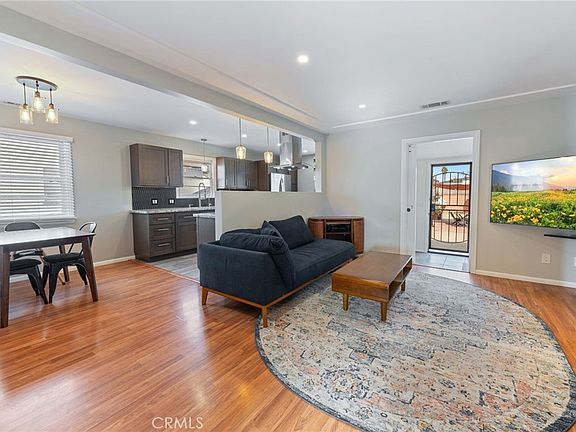 Welcome to this cozy home located in the heart of Hollydale! This home offers a perfect blend of charm and functionality. There is plenty of curb appeal with lovely landscaping and stone planters. Step inside to your bright and inviting living room, perfect for relaxing or entertaining. The kitchen has been tastefully remodeled with stunning granite counters, shaker cabinets, stainless steel appliances, tile backsplash and both recessed and pendant lighting. In addition, the wall between the kitchen and living room has been removed, creating an open-concept design. Just off the kitchen is a lovely space for your dining area. With access from both the kitchen and living room, the back porch features a barn door, laundry hookups and enough space for a workspace or home office nook. The primary bedroom is spacious with ample closet space and the secondary bedroom has French door entry. Both bedrooms share the hall bath, which has been updated with wainscotting, newer vanity, lighting and a built-in storage niche. Additional features include wood look laminate floors, ceiling fans, newer central air conditioner and furnace. With a roof that is only 4 years old, you can enjoy peace of mind knowing it's one less thing to worry about. The back yard is large and filled with wonderful family fun areas, wait till you see this! In addition to the spacious patio and lawn, the backyard features a garden, raised garden beds, chicken coop, and a graded decomposed granite area that can serve as a play space, outdoor dining area or pet run. There is plenty of parking with the gravel-lined, gated concrete driveway and your detached 2 car garage. Close to local schools, parks and shopping, this home is perfect for first-time buyers or anyone looking to downsize. Conveniently located near the 710 and 105 freeways, with the 605 and 5 freeways also just a short distance away to make your commute a breeze. Don’t miss out on this one!