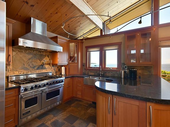 LOCATION! Extraordinary downtown Sechelt esplanade waterfront property with some of the most generous, unobstructed ocean views all the way to Vancouver Island. Southern exposure with tons of sunshine, and just steps to the pebble beach for swimming, strolling or launching a kayak. Expertly renovated, the 2,634 sq.ft. home is luxurious, offering 3 beds/3 baths, a stunning kitchen with fir cabinetry & granite counters, media room with surround sound, hardwood & granite radiant heated floors, an elevator, 2 n/gas fireplaces, new HW on demand, security system, central vacuum, steel roof - the list goes on. Fully fenced with private rear access through the electronic gate to the heated garage & low-maintenance yard. This is a must see in a prime location, walking distance to everything.