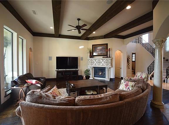 Stunning true custom home by Laguna Homes, Inc. Grand entry with custom scrolled wrought iron railing, travertine marble flooring, decorative plaster columns, wood beams on ceiling, fireplace mantle a must-see! Kitchen boasts a huge 7'X5' island, SS appliances, desk area, hidden roll out spice racks & a mudroom in the hall area. Very close to neighborhood Palais that can be used for entertaining along with a resort style pool.