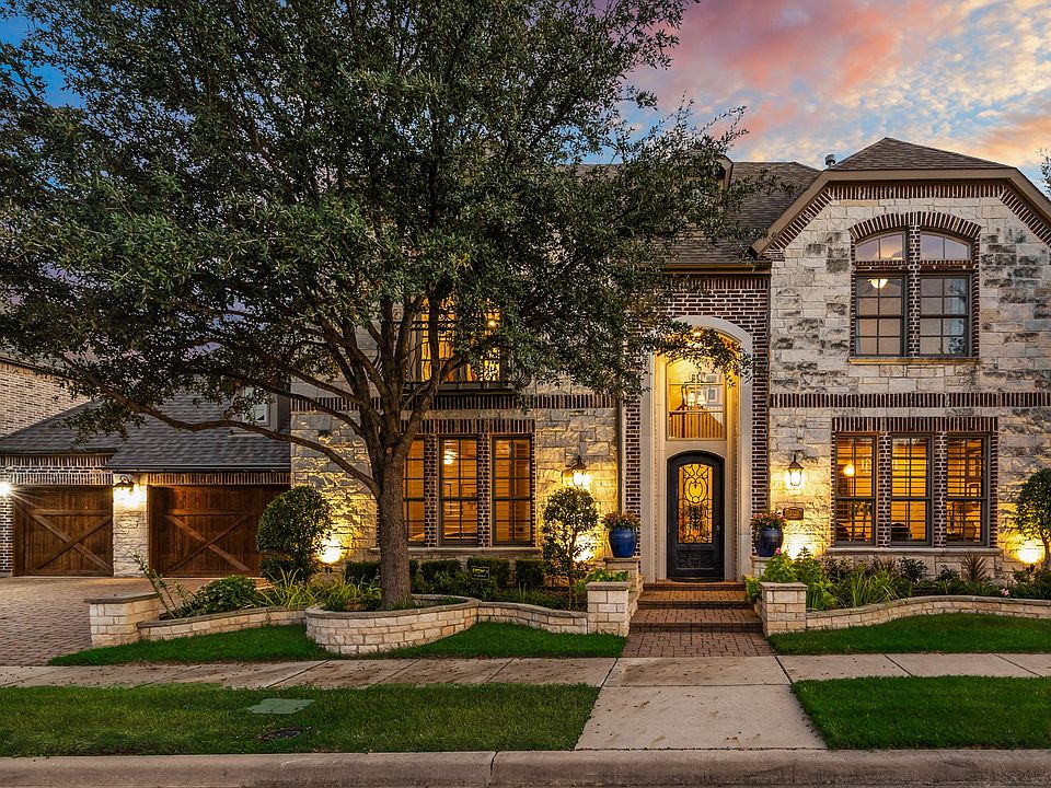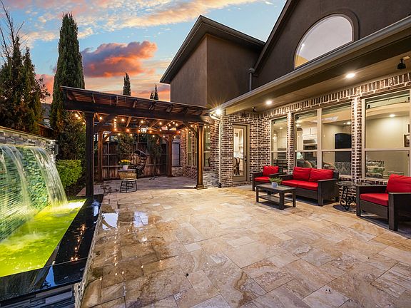 Welcome to this stunning stone and brick residence offering 5 bedrooms, 4.5 baths, and multiple living spaces all designed for both everyday comfort and elegant entertaining. Step inside to a soaring foyer and expansive open-concept living room highlighted by a floor-to-ceiling stone fireplace, abundant natural light, and views of the backyard oasis. The gourmet kitchen is a chef’s dream with granite counters, custom cabinetry, double ovens, Wolf gas range with pot filler, built-in Sub-Zero refrigerator, and an oversized island that anchors the heart of the home. A formal dining room with rich navy walls provides a sophisticated backdrop for dinner parties and gatherings. The private owner’s retreat on the main level boasts a serene spa-inspired bath with dual vanities, soaking tub, and walk-in shower. One additional bedroom and full bath is downstairs and upstairs you will find two additional bedrooms, beautifully finished baths, a loft-style game room with balcony access, and a dedicated media room perfect for movie nights. Step outside to your backyard paradise where a covered pergola with ceiling fan and water feature sets the stage for year-round entertaining. The covered patio offers plenty of room for lounging and relaxing. Located in the sought-after Avignon community, residents enjoy resort-style amenities including a clubhouse, pool, basketball courts, and walking trails. With its thoughtful design, elegant finishes, and inviting outdoor spaces, this home delivers both luxury and livability in one exceptional package.