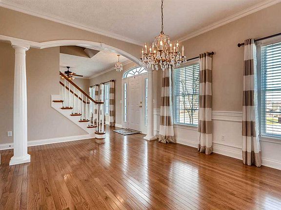 - AMENITIES: Ceiling Fan(s), Main Floor Laundry, Breakfast Bar, Eat-In Kitchen, 1st Bdrm En Suite, Garage Door Opener, Jet Tub, Formal Dining Room, Closet(s) Walk-in, Disposal, Dryer Hook Up Electric, Landscaped, Washer Hook-Up, Twin Sink Vanity, Ceiling-9+, Tub/Shower Combination, Tub and Separate Shower, Patio Covered, Deck Covered, Chair Rail, Kitchen Island, Great Room, Crown Molding, Open Floor Plan, Foyer Entry
