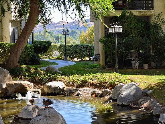 Tastefully upgraded condo perched on a knoll in highly coveted Lakeview Villas. Rare opportunity to own in this sought after complex is a 1 Bedroom Condo with magnificent views of canyons and city lights. Enter this modern Unit with upgraded Kitchen, Stone counters, stainless steel appliances and breakfast bar with a bay window overlooking serene views. Open and bright living room off the kitchen equipped with a fireplace and large sliding glass doors that lead out to your very own picturesque patio to enjoy the tranquility and calming scene. Large Master Suite with a second patio. Enjoy the remodeled bathroom with Antique block custom counter top and modern touches throughout with built-in custom cabinetry. 2 patios, stack able washer and dryer, recessed lights and high ceilings all in an open and bright unit with views. Amenities include a large pool, spa, club house, sauna and stream running koi pond throughout the complex. A spacious dog park, personal washer and dryer, 1 car garage. Just off Thousand Oaks boulevard lies tranquility and calmness in a community with its beautiful wildlife. Located in award winning Las Virgenes School District and walking distance to fine shops and restaurants.