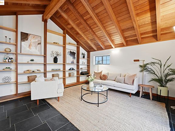 This stunning one+ bed, two bath cottage in one of Oakland's most desirable neighborhoods is a serene retreat nestled in the beauty of the hills. Newly constructed in 2002, this architectural gem features exposed beam ceilings, abundant natural light, radiant, heated tile floors throughout, off-street parking, and additional room and bathroom below with a separate entrance. Perfect for relaxation and for entertaining, the entryway features French doors which open into a private, sun-filled courtyard. Once inside, soak in the extraordinary design elements of this contemporary masterpiece. The gourmet kitchen features a clever use of space in order to offer plenty of cabinet space for even the most discerning chefs. A true oasis, the upstairs bathroom features marble tile throughout, updated fixtures, and radiant tile floors. The primary bedroom is endowed with impeccable natural wood design elements and lovely verdant views of downtown Oakland/San Francisco Bay. Find yourself in nature as directly outside of the bedroom a lovely yard reveals itself. Enjoy access to excellent public/private schools, and proximity to Claremont Country Club, Temescal Regional Recreation Area, and numerous other local and regional parks. Savor the Rockridge, Piedmont, and Elmwood nightlife/shopping.