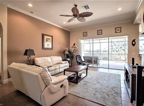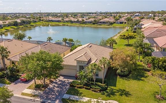Move in ready upgraded home with 3 bedrooms and 2 baths located on a SOUTHERN EXPOSURE LAKE LOT. Enjoy the large covered lanai with plenty of room for entertaining. Easy maintenance as the HOA takes care of the lawn. As you enter the home you walk into a foyer leading to the great room floor plan with volume ceilings, 21" porcelain tile throught the main living area and beautiful laminate flooring in the bedrooms, 8' doors, plant shelves and decorative niche and hurricane shutters. The chefs kitchen offers upgraded cabinets and counters, The formal dining room offers decorative ceilings w/crown molding throughout home, decorative columns and arched entry ways. The Master suite has a walk in closet, separate tub and shower with dual vanity sinks. Laundry room offers overhead cabinets and a utility sink. Excellent location close to beaches, shopping restaurants, airport and much more...EASY TO SHOW