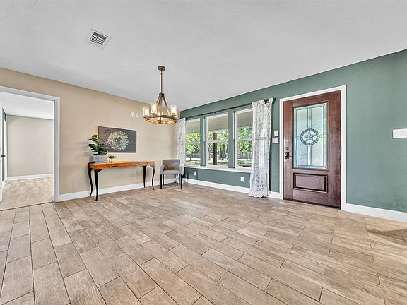Nestled beneath mature shade trees, this beautifully updated 2-bedroom, 2-bath home offers the perfect blend of modern comfort and peaceful country living. Step inside to an inviting open layout featuring wood-look tile flooring, designer lighting, and a soothing color palette throughout. The spacious living area flows seamlessly into the dining and kitchen spaces—ideal for entertaining or relaxing at home. The kitchen boasts granite countertops, rich cabinetry, stainless steel appliances, and plenty of storage for the home chef.
