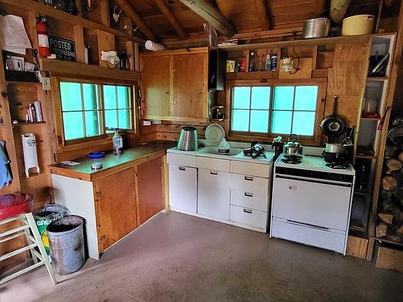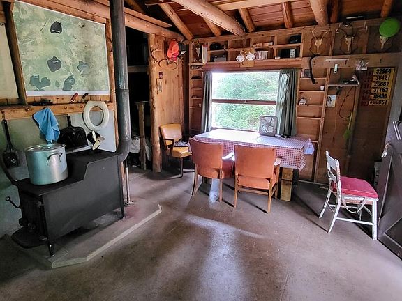 Set on +/-35 acres with the Indian Creek running through the property, this rustic cabin has sheltered generations of hunters and is now ready for new owners and new memories to be made. The cabin's interior offers an efficient kitchen w/ sink & LP gas range, a wood-burning stove, an adjoining dining area, bunk space in the heart of the cabin, and a rear living room area w/ LP gas space heater (no electricity so generator needed), and a covered rear deck that leads to the outdoor privy. Situated to the south of hundreds of acres of state land, the parcel features a mix of high and low land drawing and maintaining wildlife. The State holds a "right of first refusal" to purchase the property. Buyers, request a copy from your agent under "Documents" in the MLS. Property purchase is subject to 15 year road access agreement renewal with the State. AND the State has the right to cancel the access agreement at any time by proper written notice.