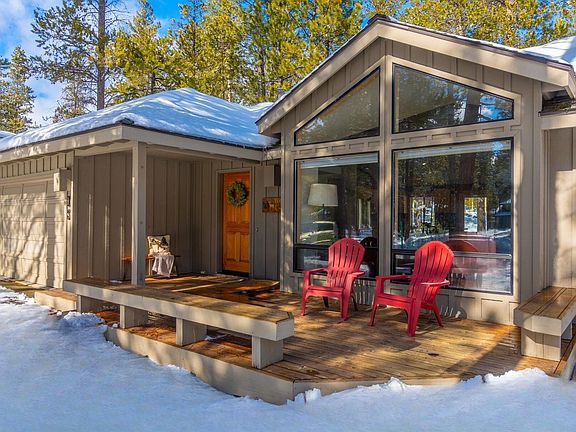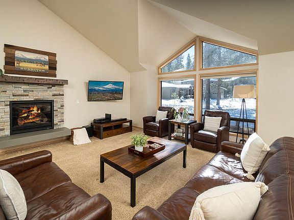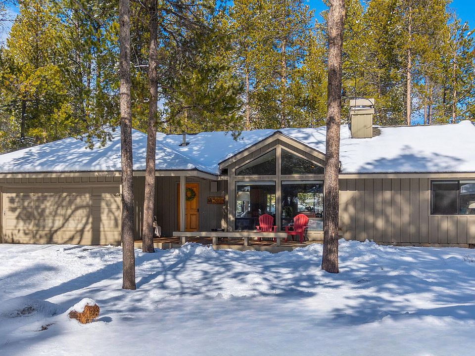 Welcome to 13 Stag Lane, a beautifully updated, single-level retreat just a few minutes' ride to the SHARC and Village. This sunshine streamed 1,558 sq. ft. home offers 3 bedrooms and 2 bathrooms and creates a warm welcome for family and friends with an open flow living, dining, and kitchen area and great separation of sleeping spaces. Mountain charm shines throughout with an abundance of windows, vaulted ceiling, slate flooring, gas fireplace with stone surround, granite slab countertops, and exposed wood beam. Take in 300 days of Central Oregon sunshine from the 2 decks overlooking the natural landscape from this spacious, corner lot. A/C will keep you cool on warm summer days. Soak in the private hot tub under the stars after a day of play. A 2-car garage is perfect for a game table and storing your outdoor gear. This home has been a successful vacation rental and is sold turn-key and ready to enjoy. Your basecamp for Sunriver adventure awaits!