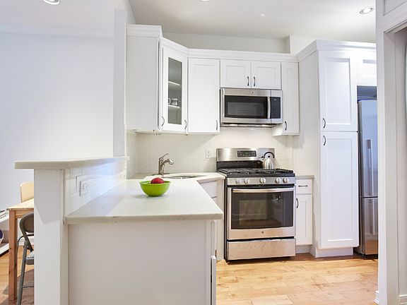 With Prospect Park at the top of the block, this fully renovated two-bedroom home blends pre-war charm with modern convenience. It features a bright open layout with hardwood floors, a fully equipped kitchen with a dishwasher, and an in-unit washer/dryer. Bedrooms are equal in size and positioned on opposite sides for privacy. Set on the parlor-level equivalent of a classic limestone, this home offers both comfort and character in the heart of Park Slope. November 1st, and no pets.