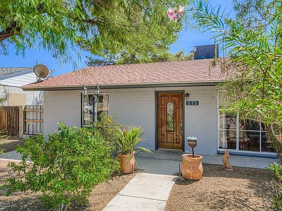 This quaint home has a large living room with lots of natural light, 2 bedrooms, and hardwood floors. The house has central A/C/heat along with a separate heater and a small A/C unit in the living room and possible RV parking in the driveway and rear yard. The laundry room is just outside the back door, and the washer/dryer is included. The extra-large backyard has a garage with electricity and lights, that could be used as a workshop. There is a garage door out to the alley, and double doors out to the house. The yard has a patio, a large shade tree with a treehouse, and lots of raised garden beds. There is also a sliding gate from the alley for an RV or trailer in the backyard. No Neighbors behind.