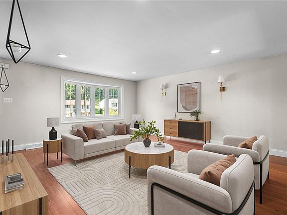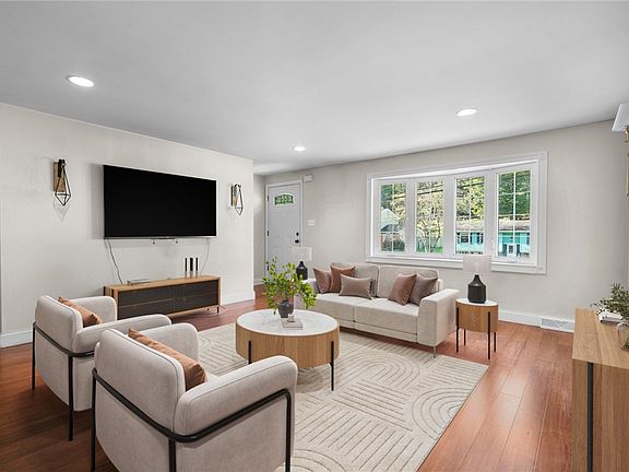 Welcome to 573 Clifton Road — a fully renovated, move-in-ready gem that checks every box! This home features a brand-new kitchen with rich dark cabinetry, granite countertops, decorative tile backsplash, and stainless steel appliances including a gas range with grill top. The open dining area flows to a private patio through a new sliding glass door with built-in blinds. Enjoy three beautifully updated bathrooms, including a tiled walk-in shower in the primary suite, a stylish main bath with tub/shower combo, and a half bath off the spacious, fully remodeled lower-level game room with its own tiled mudroom entry. Additional features include an updated roof and siding, updated windows, new interior doors, modern flooring throughout, and a large bay window that fills the living room with natural light. The backyard is a true oasis, featuring a private in-ground swimming pool with tree-lined seclusion, perfect for relaxing or a game of pool basketball.