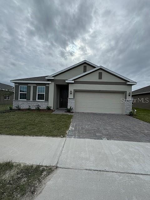Move-In Ready! Our popular Selby Flex plan boasts an open-concept design featuring neutral color palette with spacious Great Rm overlooking rear covered lanai. Tile flooring featured throughout the main living areas. Kitchen features beautiful cabinetry, solid-surface countertops, and stainless appliances. Home exterior includes stone accent along with Brick paver driveway and lead walk. Community features include parks with covered pavilions and playgrounds, beautiful pool overlooking Big Bluff Lake, and a walking and fishing peer with gazebo to enjoy!. It's nature at it's best nestled by conservation while still giving you access to the Florida Turnpike in eight minutes and major shopping, restaurants and more just a short drive away.