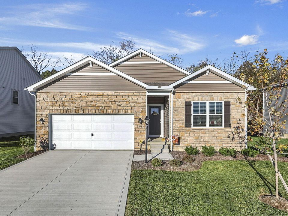 OPEN HOUSE SUNDAY 10/26 2-4PM. 3.99% Rate Available. Nothing to do but move in! This 3-bedroom 2-bath ranch home is less than 1 year old and on a beautiful wooded lot that is hard to find in Delaware. Plus assumable 3.99% fixed rate available. Luxury Vinyl Plank flooring and tall ceilings with fresh paint greet you at the entry. Kitchen boasts 42-inch cabinets, huge island with ample seating, quartz countertops and walk-in pantry. Great room has plenty of space for beautiful furnishings with cozy view of the fireplace inside and the woods from the large windows and sliding glass doors. Owners suite feels like a retreat with views of the woods, plenty of room for furniture and a luxurious owner bathroom with separate WC and walk-in closet. Split floorplan makes the 2 add'l bedrooms near the entry and full bath could be perfect for kids, for guests, or use as your home office. Full basement with poured and insulated walls has big potential, includes full bath rough-in and room to double the living space. Why wait and deal with new build stress when this beautiful home includes wooded view, green grass, and window treatments along with high-end designer finishes. Ask your agent for details on 3.99% assumable FHA mortgage that is available. Schedule your showing today!