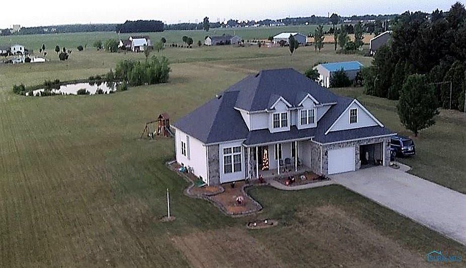 Beautiful 5 bedroom home on nearly 6 acres of land. One acre pond, pole barn. First floor master and laundry. Tons of space! Home office & City water!