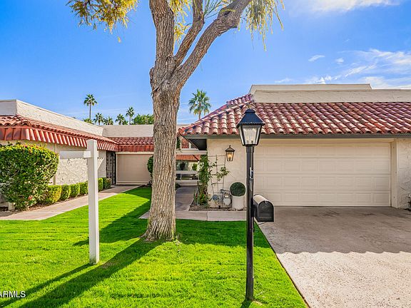 This outstanding Paradise Valley townhouse with 2 bedrooms, 2 bathrooms, and 1,666 sq. ft. of living space is ready to be your new home! It has soaring cathedral ceilings, a centerpiece fireplace, and expansive living and dining areas flooded by natural light. The updated kitchen opens to a private patio ideal for relaxing or entertaining. Residents enjoy lush community landscaping, a beautiful community pool, inviting clubhouse, and a tranquil neighborhood setting - all just minutes from Scottsdale's shops and dining.