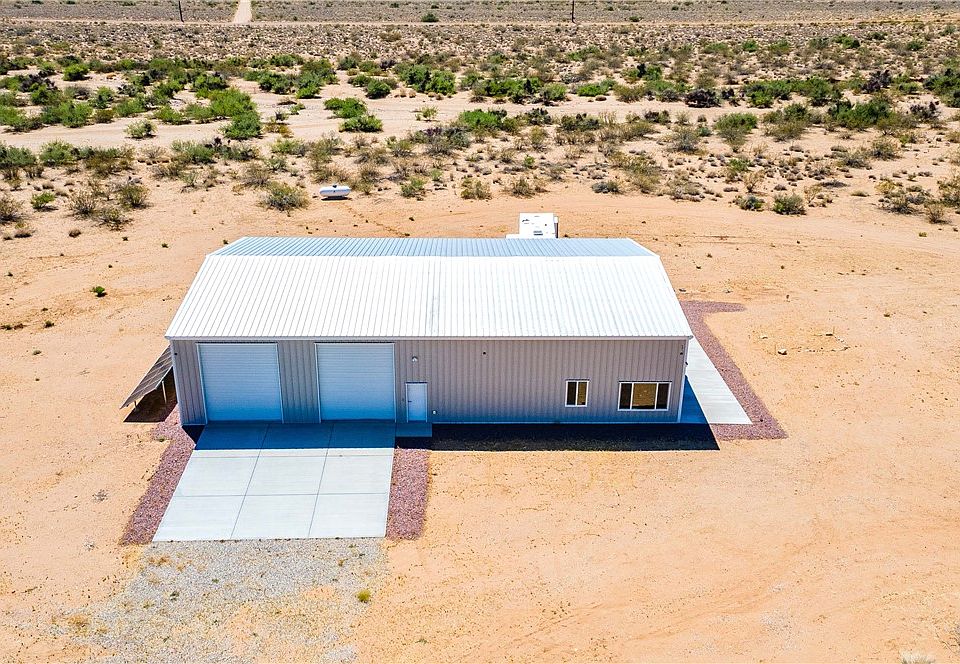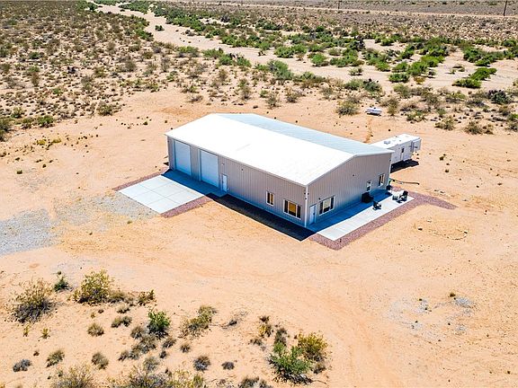 Off Grid 4,000sqft Insulated Steel Shop on 40 Acres! Built in 2020 with 2,500sqft Garage Shop and 1,500sqf Bardominium Future Living Space. Living Space needs finishing (plans included). Full 24 Panel Solar Power System (Owned). Great roads to this property- just .25 mile off Pavement. Building is fully plumbed, septic tank installed, plus Exterior RV Dump. 2,500 Underground Water Tank and Pressure Tank for Water Haul Setup, Jet Pump, Multistage Water Filtration + Softener. Electrical rough in Completed with Electric Panel + Sub Panel for Living Space. The Living Space Features: Firewall Separation, Windows, Doors, Plumbing Drains and Exterior Full Width Patio. The Shop Features: 3 RV Size Garage Bays with 14ft Doors, LED Lights,Insulated and Cement Slab w/ Parking Aprons. Move In Ready Remodeled 38ft 5th Wheel RV with 2 Slides: 2 Bdrms, Solar Power + Generator, Lithium Battery, Water Filtration and Plumbed to Septic. Off Grid=Solar, Wind +Generator Power. Security Cameras + Phone Notification Alerts (Solar Based + Cellular Connected)=Easy Remote Monitoring. Security Solar Lights + Entry Gate Light+ Security Camera. Owner May Carry with $100K Down. Call your realtor for personal tour.