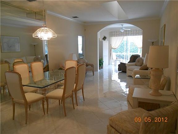 Beautiful 3 BR/2 BA patio home. Large kitchen with cozy cafe' area. Master bedroom has large walk-in closet bathroom with stall shower and his & hers vanity. Living room has extended Florida room and skylight. Screened patio overlooking private garden. Diag tile in all living areas. Crown molding throughout. NEW washer NEW dishwasher NEWER A/C (3 yrs new). Conveniently located to I-95 turnpike restaurants shopping and just minutes to the beach. Walk to houses of worship. Community offers elegant clubhouse with resort style pool his & hers fitness centers aerobics billiards cards crafts clubs business center library har-tru tennis courts professional entertainment. All dimensions deemed to be correct but not guaranteed.