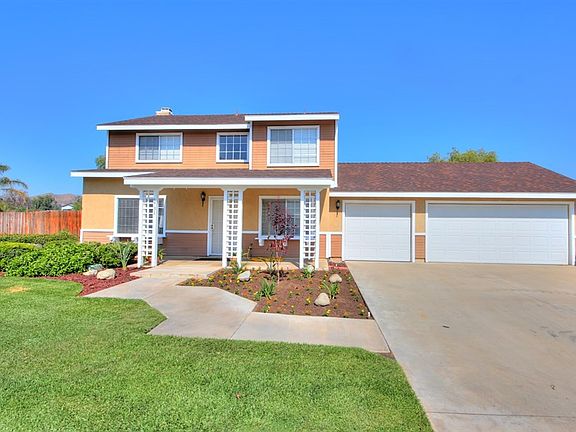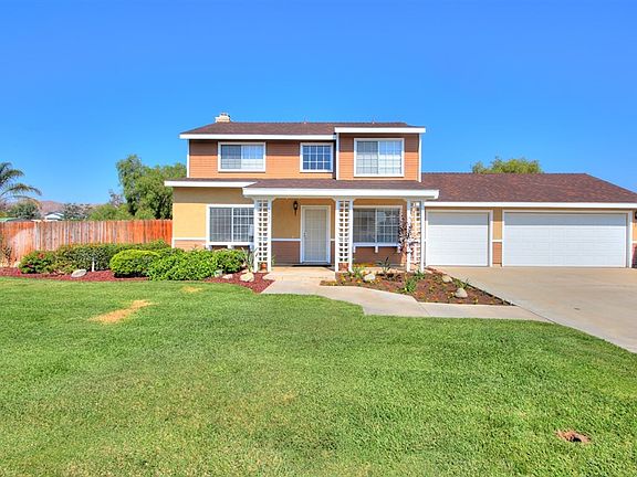 WONDERFUL TWO STORY HOME THAT FEATURES 4 BEDROOMS, 3 BATHROOMS, ONE BEDROOM AND BATHROOM DOWN STAIRS. FORMAL LIVING AND DINING ROOM, FAMILY ROOM WITH BRICK FIREPLACE. KITCHEN WITH TILE COUNTER TOPS, AND BREAKFAST BAR. 3 SPACIOUS BEDROOMS UPSTAIRS. MASTER BATHROOM HAS DOUBLE SINKS. INTERIOR FRESHLY PAINTED. LARGE HORSE PROPERTY LOT ALL FLAT AND USEABLE. SPARKLING IN GROUND POOL AND SPA. LARGE PATIO COVER. 3 CAR GARAGE DIRECT ACCESS. RV PARKING ACCESS. MATURE LANDSCAPING IN THE FRONT YARD.