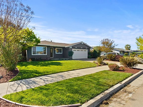 This beautifully maintained 3-bedroom, 2-bath home located in the desirable Blossom Valley neighborhood showcases stunning curb appeal. Offering 1,516sq ft of living space on a 6,300 sq ft lot, this single-story residence blends modern updates with warm, inviting charm. The spacious layout boasts light-filled living areas, a cozy family room with a brick fireplace and French doors that open out to a covered patio, perfect for relaxing or entertaining. Bright kitchen features quartz countertops and ample cabinetry, flowing seamlessly into the dining area. Retreat to the primary suite with an expansive and luxurious en-suite bath highlighting a step-in shower, jetted soaking tub and large vanity with double sinks. Dual-Pane windows and A/C for comfort. Updates include fresh interior & exterior paint, luxury vinyl plank, carpet, baseboards, crown molding & light fixtures. Conveniently located near parks, schools, shopping, dining and major commuter routes, this Blossom Valley gem is move-in ready!