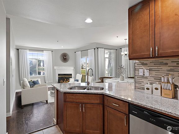 Move-in ready, ground-level, lakefront, corner unit at Harbor Reach! This home features 9ft ceilings, abundant natural light, & serene lake views. Updated kitchen includes stainless steel appliances, granite countertops, & an eating bar. Enjoy indoor-outdoor living with a private patio, perfect for relaxing. The primary suite offers a custom walk-in closet and en suite bath, plus a second bedroom and full bath for added flexibility. In-unit laundry, an attached garage, & guest parking nearby provides convenience. Community amenities include a clubhouse with a gym, sauna, walking trails, & quiet streets. Conveniently located near Kent Station, freeways, dining & shopping. Pets OK. Seller will credit $5,000 towards the buyer's closing costs.