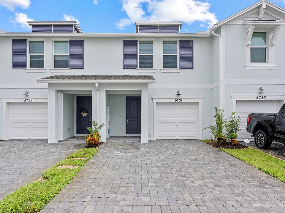 Welcome to this gently lived-in 3 B/R, 2.5 BA townhome w/1-car garage. Situated in a quaint and highly desirable gated community. Over 1,400 sq ft of thoughtfully designed living space, this home offers modern finishes and low-maintenance living. The open-concept main level features a spacious kitchen with granite countertops, white shaker cabinets, center island, and a full stainless steel appliance package - perfect for entertaining and everyday living. Impact glass throughout adds peace of mind and energy efficiency. Upstairs, you'll find a versatile loft area, a serene master suite with walk-in closet and private ensuite bath, a fully equipped laundry room, and two additional bedrooms. Enjoy community amenities including a cabana and refreshing pool. Conveniently located with easy access to I-95, nearby parks, water parks, schools, shopping, restaurants, and medical facilities. Fast closing availableready for your personal touches. Don't miss this exceptional opportunity!