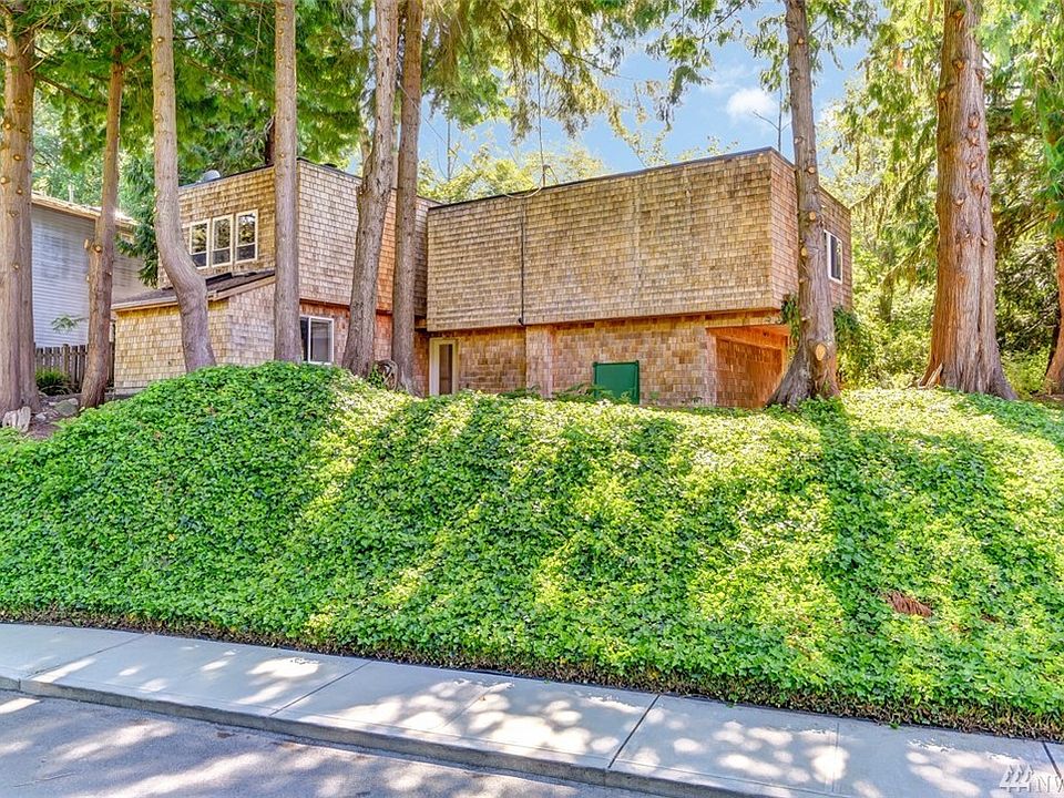 Unique 2000 sq ft home has 3 bdrms, 2 full baths & is situated on a large secluded lot surrounded by lush greenery. Freshly updated w/new carpet & paint throughout, roof & appliances. Kitchen w/eating space & slider leading to deck. Dining & living areas each have fireplace. Spacious Master bdrm has attached Master bath w/Corian double vanity. 2 more generous bdrms + full bath on main. Skylights throughout for tons of natural light. Enjoy a beverage after a long day on entertainment size deck.
