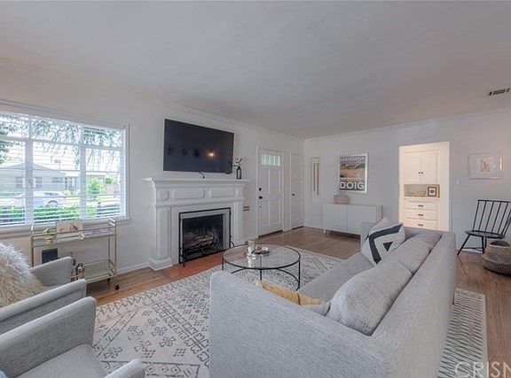 Come experience this super charming, updated home in a lovely pocket of Sherman Oaks. This designer inspired home welcomes you with refinished wood floors, a bright airy living room with cozy fireplace, crown molding and a seamless transition between vintage detail and modern aesthetic. The Formal Dining Room opens to the remodeled Chef's Kitchen which includes, quartz counter tops, Subway tile, recessed lights, upgraded stainless steel appliances and designer fixtures. There are two spacious Guest Bedrooms featuring ample closet space and wood floors and a Master Bedroom with French doors leading to rear patio area. It's California indoor/outdoor living at its best! The Guest Bathroom has charming vintage detail, is beautifully maintained and features a separate tub and shower. The 2nd Bathroom off master bedroom is newly updated with Subway tile, designer vanity, skylight, newer fixtures and frameless glass shower. And let's not forget the Great Outdoors! The amazingly private yard offers plenty of room for large-scale entertaining including a huge grassy play yard, BBQ area with decomposed granite, plus ample sitting area for family and friends. Located near coveted Kester Elementary School and a short distance to Ventura Blvd shopping/dining and commuter routes, this home is not to be missed!