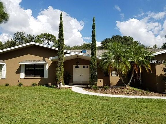Fabulous Custom Home in Ravenwood Community! This beautiful home is situated on a sprawling one acre lot with nice greenbelt and a private wooded backyard with beautiful oaks. This great family home offers a very unique and versatile floor plan with 3 bedroom/bathroom en suites and two separate living areas. Master wing of the home includes a spacious bedroom and bath with jacuzzi tub and new seamless glass walk-in shower, double vanities, his and hers walk-in closets, separate office/bedroom, along with a large great room with charming double french doors which lead out to huge covered lanai and patio. Wonderfully updated kitchen includes maple cabinets, granite countertops, coordinating ledgestone backsplash, stainless and dark glass appliances, large island and room for dining set. Warm and welcoming family room off of kitchen includes wood burning fireplace, access to large covered brick patio and leads to two bedroom/bathroom en suites. One suite offers access to a private rear deck and access to huge covered lanai. Enjoy your morning coffee here while listening to the birds sing! Third en suite includes beautiful new full bathroom with granite countertop and seamless walk-in shower. You must see this home to appreciate all it has to offer. Perfect for family needing in-law suite as well. Awesome location close to downtown Sarasota and University Town Center shopping and restaurants!
