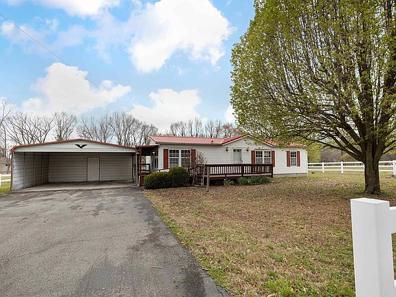 Country Living situated on 1.04 acres with vinyl fence. 3 bedroom 2 bath manufactured home built in 2000. Nice size front deck. There is also a side covered deck. Asphalt drive leading to a 2 car carport with a attached shed that has wood work shelving. Heat pump/AC in 2022, Septic tank with aerator pump 2023. New floor coverings. Metal roof. Nice size kitchen with island. Walk in closet in master bedroom and has a walk in shower in master bath. Move in ready!