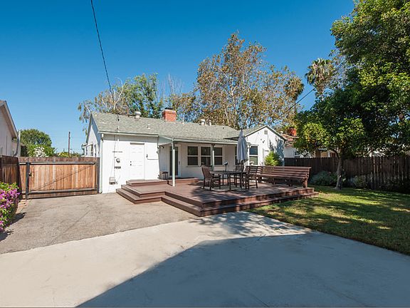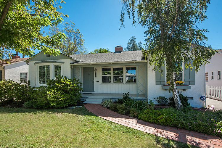 Charming 1940's traditional home on tree-lined street in coveted pocket of Sherman Oaks. Warm and welcoming with great curb appeal. The living room is generous and bright with beautiful hardwood floors, trey ceiling detail, and gas fireplace framed by a lovely mantle. Traditional wainscoting plus crown and base moldings grace the formal dining room that opens to the updated kitchen with newer cabinets, quartz counter tops and upgraded appliances including newer washer/dryer. Located at the rear of the home off laundry area is a remodeled half bathroom. There is a convertible den that can be used as a home office or part-time 3rd bedroom and overlooks the rear yard. The full bathroom is newly updated with designer tile and fixtures. There are updated vinyl windows, smooth ceilings, and a security system. Perfect for summer nights, are the expansive wood deck and grassy yard complete with a delicious orange tree. This home also includes a detached 2-car garage with automatic garage door opener. This charming home is in great condition and ready for move-in!