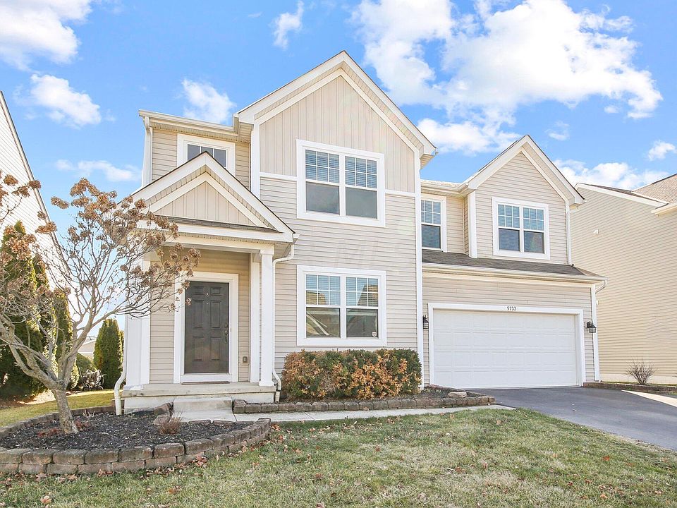 MUST SEE! Spacious home offers 4 bedroom, 2.5 bath in this Dublin community! Foyer offers high ceilings, New vinyl floor through out leading into a great room and open kitchen concept with tons of natural light, perfect for entertaining. Kitchen offers stainless appliances. First floor also offers a flex dining/office space. Upstairs offers laundry room, Primary suite with generous size walk in closet and attached bath with soaking tub and shower. Basement includes fully renovated finished living area with built in bar, storage, TV area, really great area to watch sports or movies and Gym. Back yard offers surrounding trees for privacy and patio with pergola/pavilion includes attached tv mount.