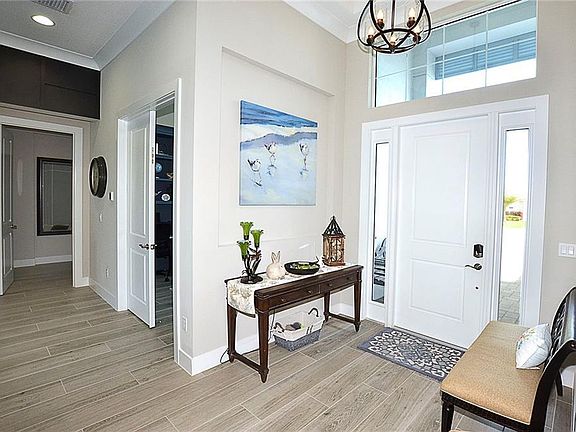 MOVE-IN READY! GHO Talbot model in Bent Pine including cabana bath, saltwater pool, spacious lanai, upgraded no-see-um pool cage and wired speakers. Kitchen features quartz countertops, over-sized island, KitchenAid appliances, custom hood, RO faucet, custom backsplash and large pantry. Owner's suite offers direct access to the lanai and walk-in shower with dual-rainfall shower. Beautiful custom office/den, plank tile flooring throughout, insulated impact windows and doors, plantation shutters and an oversized 2-car garage with plenty of space for a golf cart. Only minutes from the beach.