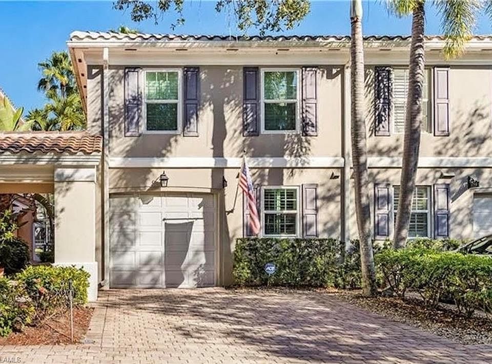 Highly Desired, Upgraded 3 bedroom, 2 1/2 bath Townhouse with a 1 Car Attached Garage in a Family Friendly North Naples Community at "The Cove" that's Built Solid: SOLID POURED CONCRETE (All Exterior Walls Including 2nd Floor) and Metal Framed Interior Walls as well as The Cove Communities New Tile Roofs that were All completed December 2024 -.- This Townhouse has a Nice Open Floor Plan with All Tile on 1st floor, Brazilian Cherry Wood Floors on Stairs, Landing and All 3 Bedrooms on 2nd Floor, Granite Counters and Stainless Steel Appliances in Kitchen, 4 Large Sliding Glass Doors that lead to your Private Screened Lanai with Alluminum Elite Roof with Relaxing Lake Views, Tropical Plants, a Wide Variety of Animals including Various Fish like Bass and Bluegill, Numerous Bird species such as Herons, Egrets, Ducks, Bald Eagles and Mammals like Otters and Rabbits -.- This Townhouse has Hurricane Protection: All Front Windows and Octagon Side Window has Impact Glass and Back Windows and Sliders have White Manual Accordion Shutters -.- This Townhouse Also has Plantation Shutters, a Whole Home Water Filter, Culture Marble Counters in Bathrooms, Epoxy Garage Floor, Garage Shelving and More -.- The Cove Community has a Newly Renovated Heated Community Pool, Numerous New Landscaping Throughout, Low HOA Quarterly Fees and More... -.- Close-by to this North Naples Location are A+ Rated Schools, Mercato for Nightlife/Restaurants/Shopping, I-75, Numerous Golf Courses, Great Shopping and Many Top Rated Beaches in Naples -.-
