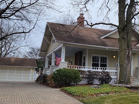 Looking for a house with lots of character, this is it! Great curb appeal with oversized wrap around front porch, mature trees & brick paver driveway. Neutrally decorated with refinished hardwood floors in living room, dining room & downstairs bedrooms, living room with fireplace and newly remodeled bathrooms. Updated kitchen with white cabinets, new stainless steel appliances and cozy breakfast nook with bay window seating and built in cabinets. Newly carpeted family room (2nd floor) with gorgeous vaulted wood ceiling and beautiful view! Primary bedroom newly carpeted with walk in closet. All bedrooms have walk in closets and ceiling fans. Large yard (76X262) with brick paver patio! Full basement & 2.5 car detached garage! New central air conditioning for 1st floor. Perfect location close to Patriot's Park, YMCA, and schools!