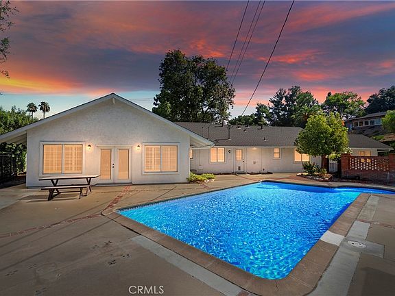 Welcome to this beautifully updated single story ranch home spanning 2,732 square feet, situated on a spacious 14,810 square foot lot. The property features a grand circular driveway, providing ample parking and an elegant entrance to the home. Recent updates include a new AC furnace and ducting, new water heater, and new roof. Inside, the home boasts modern amenities and stylish finishes, including recessed lighting, ceiling fans, dual-pane windows, and plantation shutters. The kitchen is a chef's delight, with granite counters, a double oven, a five-burner stove, with ample cabinet space. Tile flooring runs throughout the home, adding to the clean and contemporary feel. The garage has been expertly converted into a versatile 410 square foot ADU (Accessory Dwelling Unit) via a covenant with the City of Riverside (see supplements). The ADU is fully equipped with a cozy living area, bedroom, bathroom, and kitchenette, making it perfect for guests or extended family. The backyard is a true oasis, featuring a new Aluma wood-covered patio with ceiling fans that sits just behind the newly refurbished pool. Citrus trees surround the rear yard, adding to the serene and private atmosphere. The driveway extends to the rear of the property, providing plenty of room for RV parking or the opportunity to build a carport. This home truly has it all, offering comfort, style, and plenty of space for all your needs. Don’t miss out on this exceptional property!