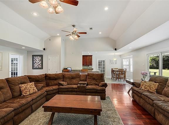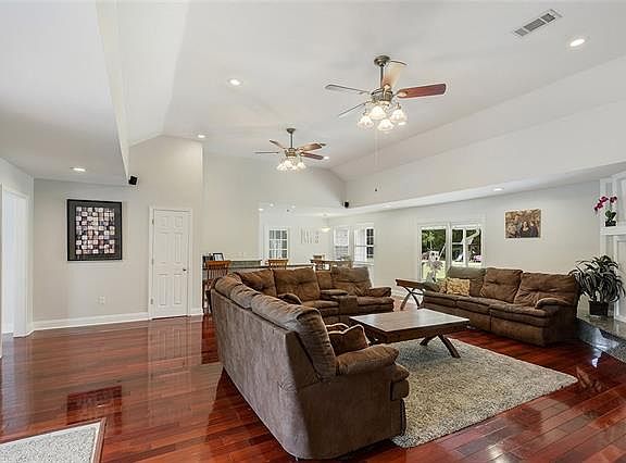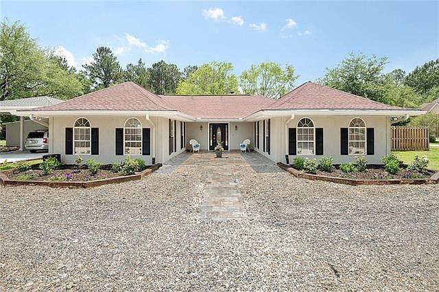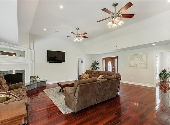Great spacious, 4 bed, 2 bath, home located on 1 acre. Private quiet setting, close to shopping and I-10 Home features beautiful wood floors and mantle fireplace in living area. High ceilings and crown moldings throughout. Custom kitchen w/stainless appliances, granite countertops, custom cabinets. Formal dining room and french doors. You will enjoy the large master bedroom and bath w/hydro tub, separate shower with french doors. Storage shed and big covered patio for entertaining.
