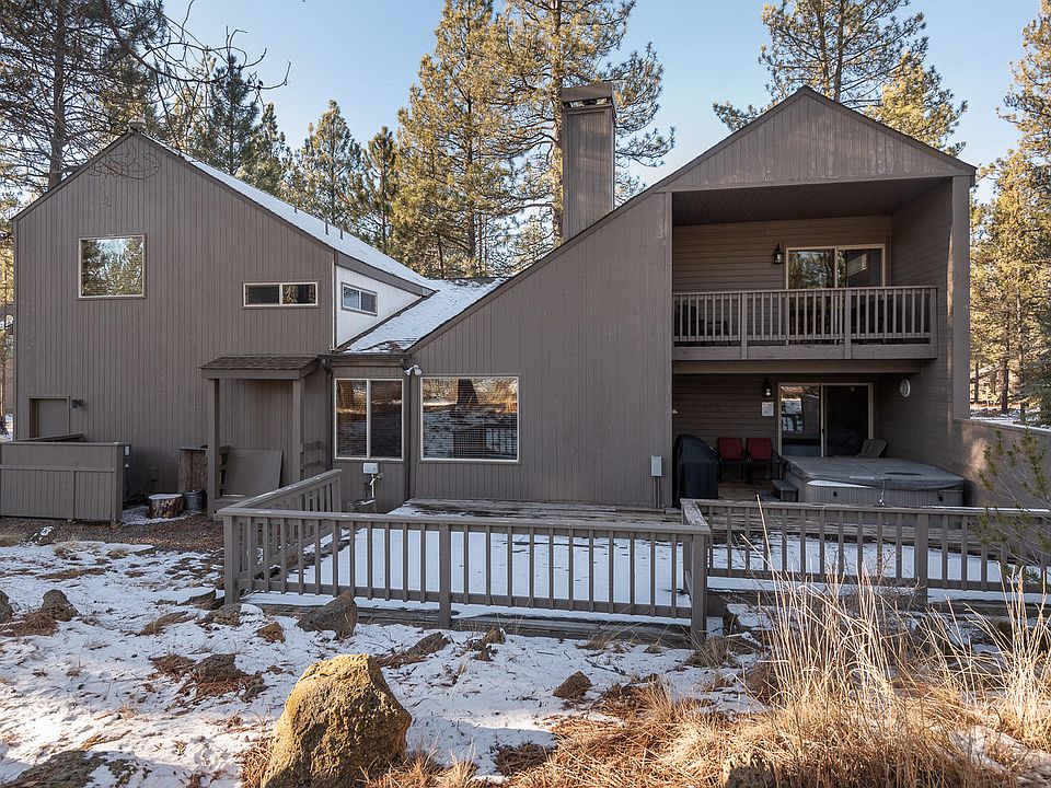 Spacious Sunriver home has it all. Fantastic location just down the street from the Sharc. Home features upgraded kitchen large cozy living room with woodstove, master suite with soaking tub, upgraded counters and walk-in closet. Upper and lower decks overlooking the forest and a loft that when custom Barn door closes turns into a second private master suite. Wood paneling throughout the home, Hot tub. This home would make a fantastic rental, residence or family get away. Home comes fully stocked and furnished, right down to kitchen items linens and 10 Sharc passes paid for 2021. Move in Ready!