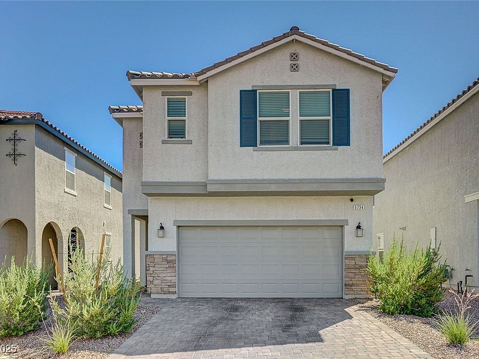 White quartz countertopsLow maintenance desert landscapingSpacious master bedroomUpstairs laundryArtificial turfStone paversOpen-concept floor plan